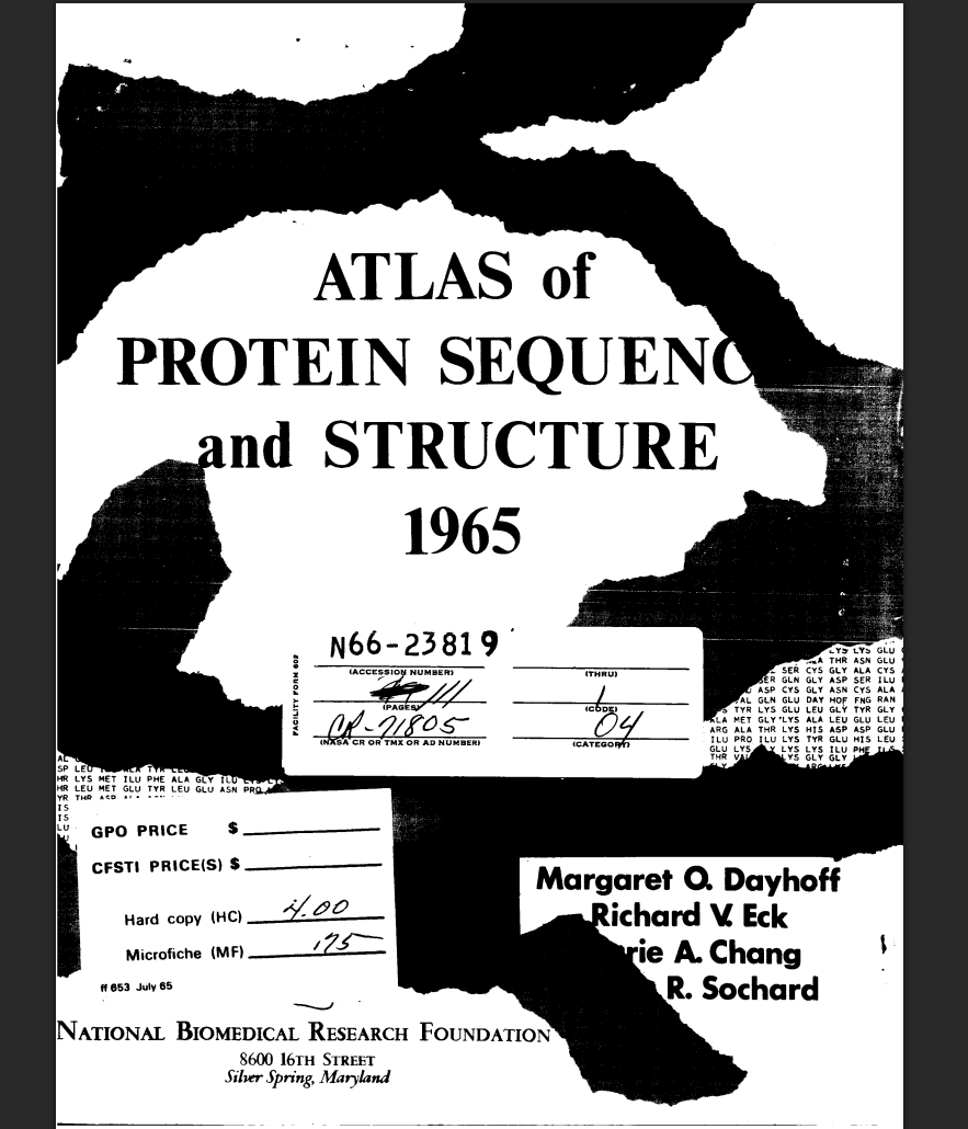 It is hard to believe that in under 70 years we have gone from a handful of painstakingly gathered protein sequences to databases like Genbank, RefSeq, UniProt, and PDB that boast billions of unique sequences. These structural datasets, gathered by hundreds of scientists over decades, were crucial for the development of AlphaFold, an AI model for predicting 3D structure from amino acid sequences that won the 2024 Nobel Prize in Chemistry. Much as the Atlas helped to unlock a deeper understanding of phylogeny and evolution in 1965, these sequences are ushering in a new era of bioinformatics driven by machine learning.