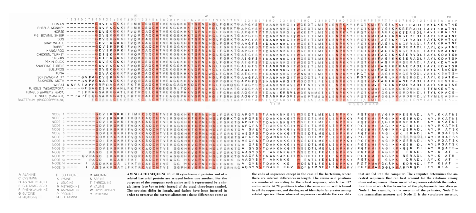 Dayhoff’s program was published in 1962. Named COMPROTEIN, it freed scientists from the drudgery of protein alignment. When tested against ribonuclease, a sequence that had taken scientists months to solve manually, the program correctly arrived at the sequence in a matter of minutes.
