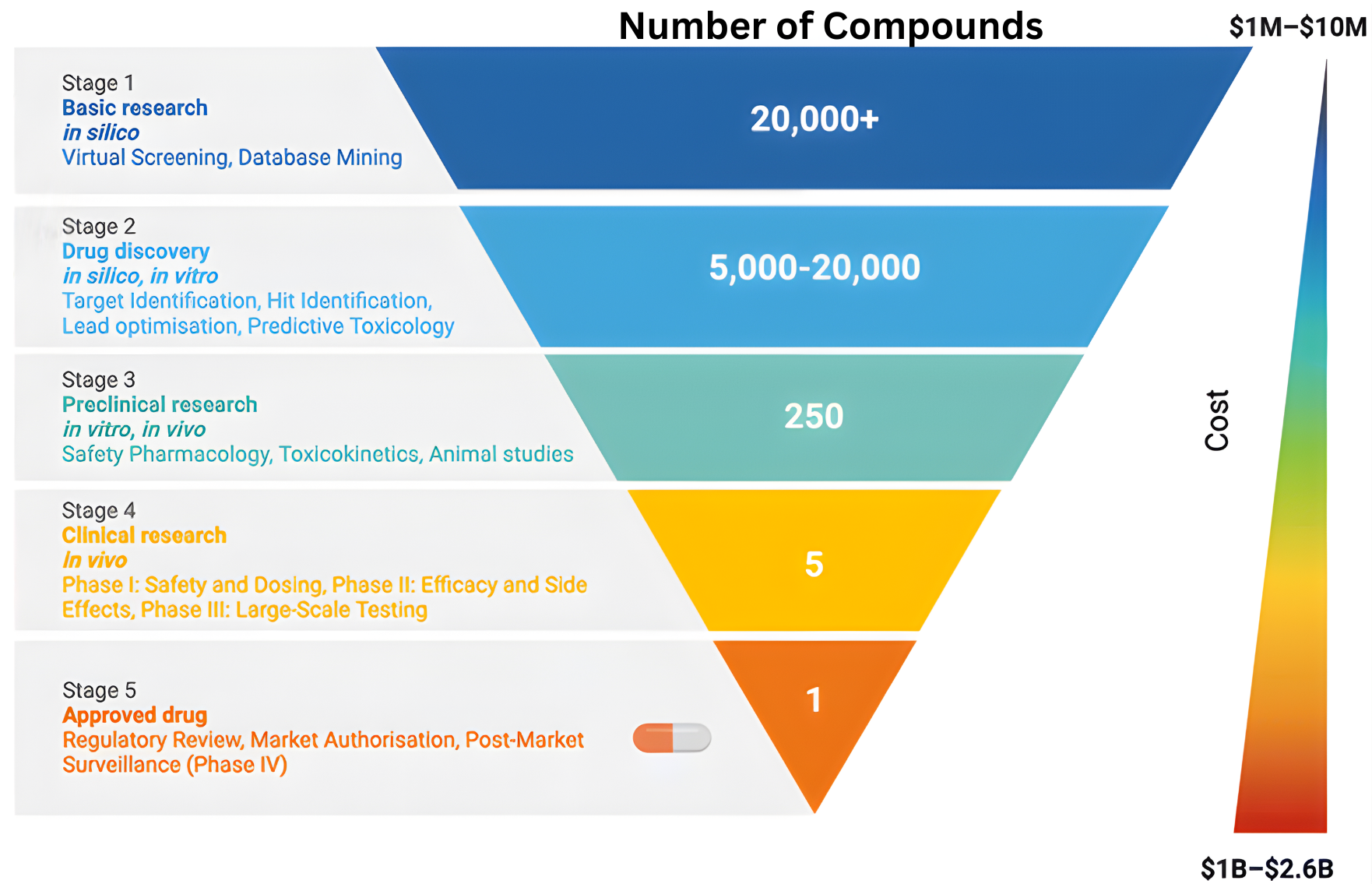 To understand why clinical abundance is important, we must step outside the prevailing view of clinical testing as a mere “validation step” for scientific ideas. The familiar funnel metaphor of drug discovery, depicting a linear progression from basic science to regulatory approval, reinforces the flawed notion of clinical testing as a passive filter designed to screen pre-existing ideas. While this model is narrowly correct in a regulatory sense, it obscures the clinic’s role as an active engine of discovery.