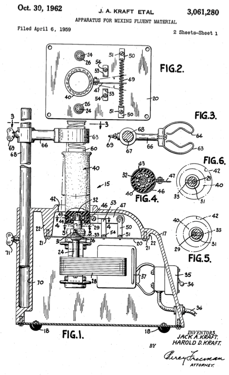 We may never know which specific mixture drew the ire of Natelson. But we can infer from a letter, drafted by the Kraft brothers, that it concerned viscous substances. The letter also reveals just how excited the brothers were about their invention. According to their account, Jack brought the original idea to Harold, and the two sketched out potential solutions on October 20, 1958. Just three days later, they had built their first prototype using the same kind of shaded pole AC motor found in their record players.2
